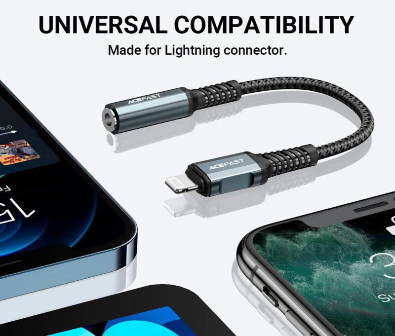 • الوظيفة: تحويل الصوت من Lightning إلى منفذ 3.5mm AUX (أنثى)